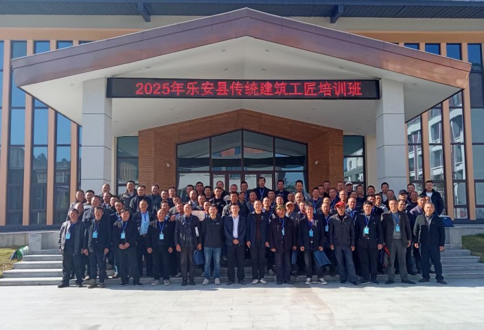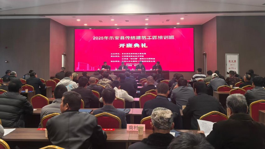 11月24日至26日,2025年乐安县传统建筑工匠培训班在抚州市乐安县流坑镇举行。本次培训班由乐安县住房和城乡建设局主办,我校与江西省“样式雷”建筑文化研究会共同承办、江西九丰古建筑工程集团有限公司协办。乐安县住建局局长康小明、副局长陈川,学校纪委书记郭航、校领导林鹏等出席开班式。乐安县120余名传统建筑工匠参加。